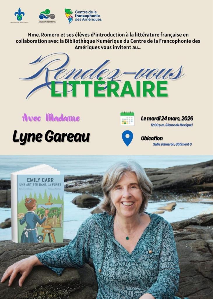 Je participe depuis plusieurs années aux Rendez-vous littéraires organisés par le Centre de la francophonie des Amériques. Ce mois-ci c’est avec grand plaisir que j’ai rencontré la classe Mme Azaléa Romero Trejo (Universidad Veracruzana, Mexique).